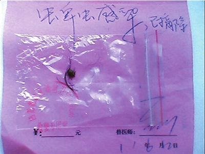 回龙观防疫站出示的诊断书显示,陆先生家被咬的宠物狗“蜱虫感染,已摘除”。