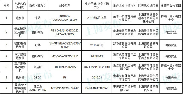 上海发布指出,脚踏平台不合格,会造成消费者在正常使用电动跑步机时,引发意外跌倒危险;电器安全不合格,会影响消费者正常使用电动跑步机,引发人身伤害事故,发生触电危险。